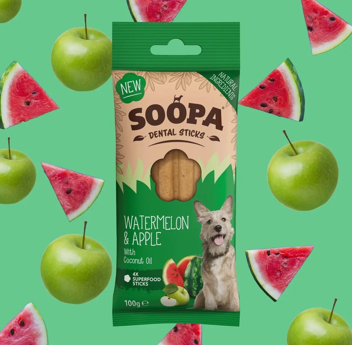 Les bâtonnets dentaires Soopa sont une friandise hypoallergénique sans céréales pour le chien qui adore mâcher. Fabriqués à partir d’ingrédients naturels de qualité humaine, ils aident à garder les dents propres et à améliorer l’haleine des chiens. Ces friandises regorgent de vitamines, de minéraux et de bienfaits pour la santé.