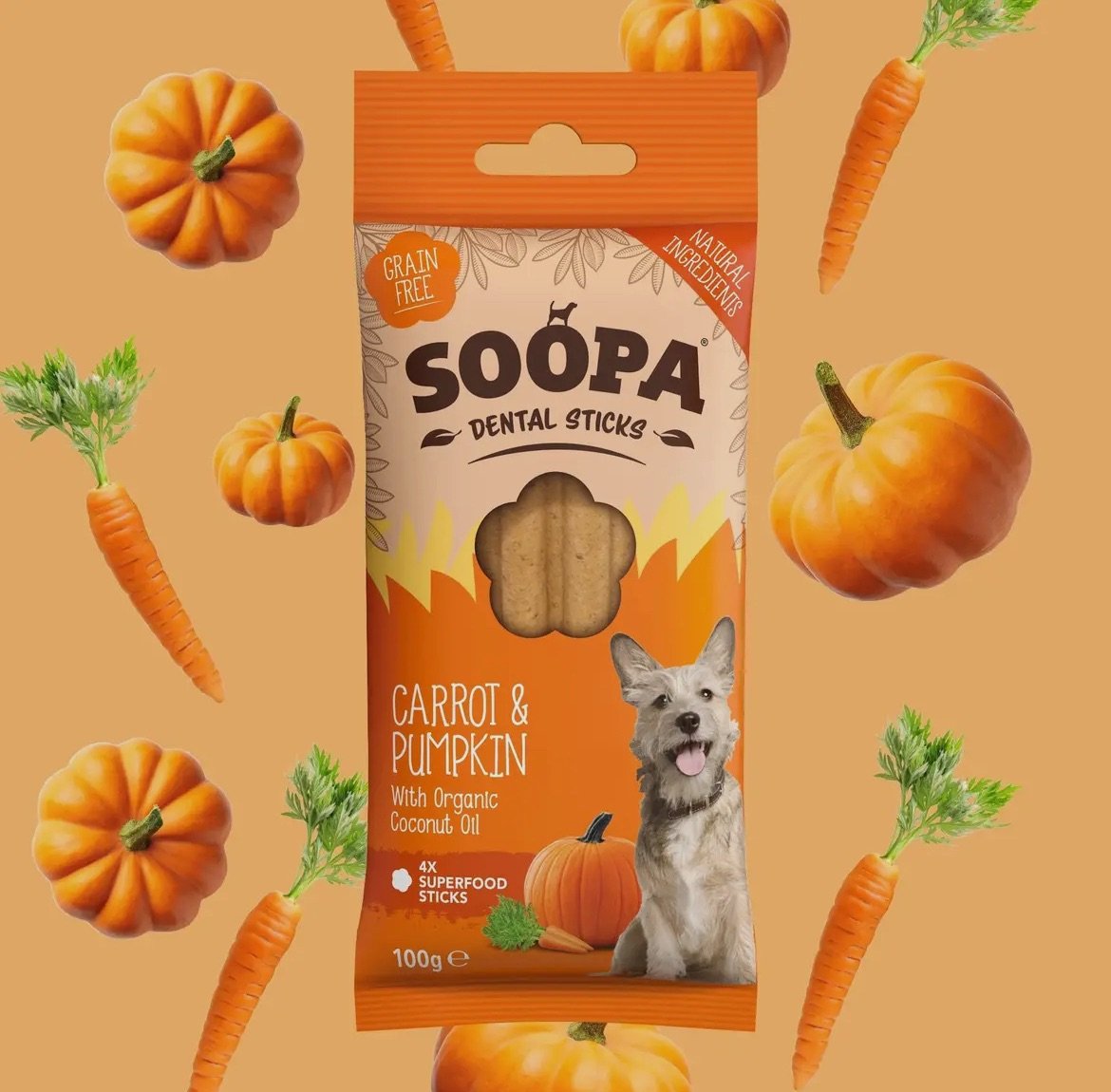 Les bâtonnets dentaires Soopa sont une friandise hypoallergénique sans céréales pour le chien qui adore mâcher. Fabriqués à partir d’ingrédients naturels de qualité humaine, ils aident à garder les dents propres et à améliorer l’haleine des chiens.